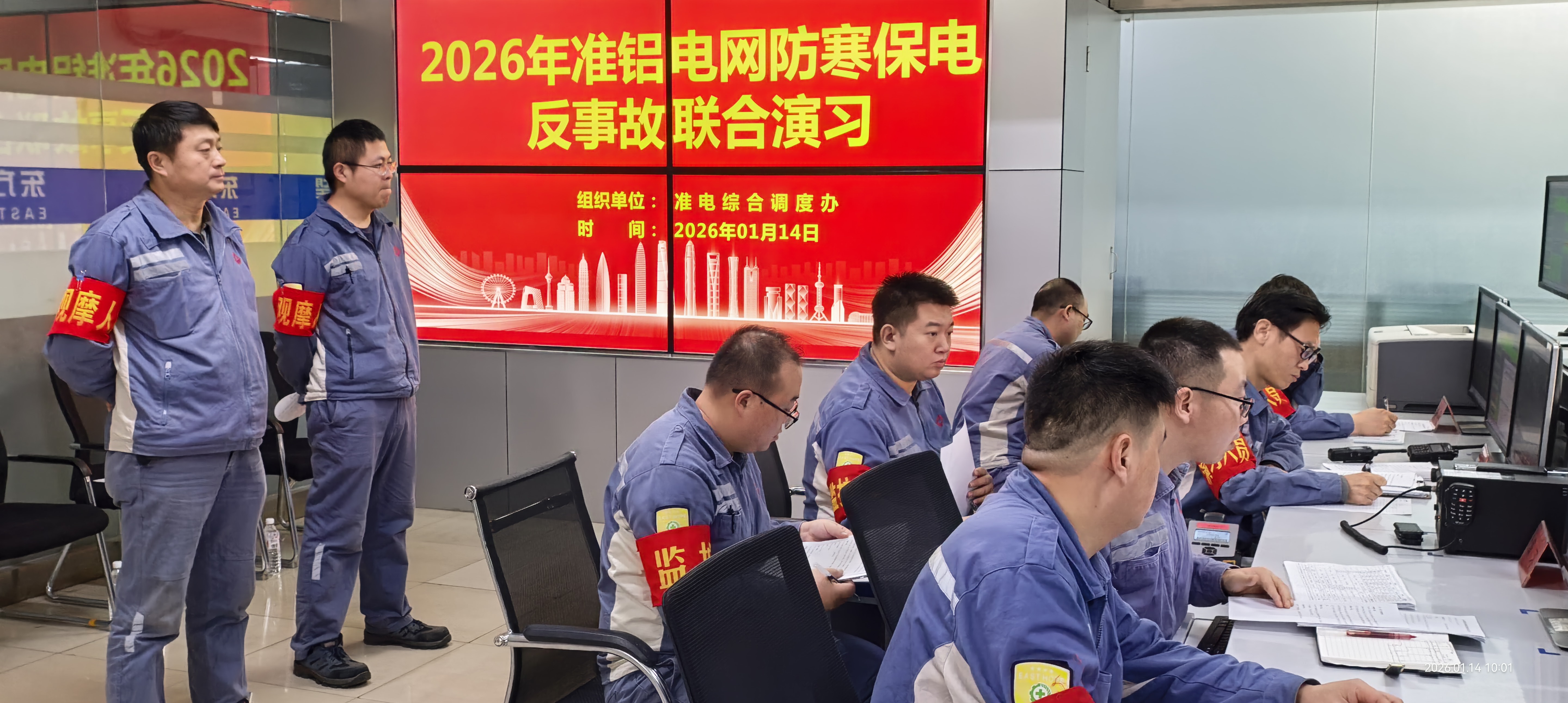 演习中,随着警报鸣响,各参演单位快速模拟电网在零下25摄氏度、大雪天气异常跳停瘫痪情况下的真实处置流程。电网调度快速反应、精准处置,相关人员迅速按照事故应急预案对关键设备进行紧急处理,消防站快速到达指定区域,最终顺利实现线路复电。演习全程真实跑位,模拟操作,全程计时,并做好记录,有效进行演习总结。本次演习进一步提高了公司涉网各厂在电网大型事故时的应急处理能力,有效暴露了现有问题,为公司有效制定整改措施,提升电网抗风险能力,保障电网安全稳定运行提供了有力支撑。