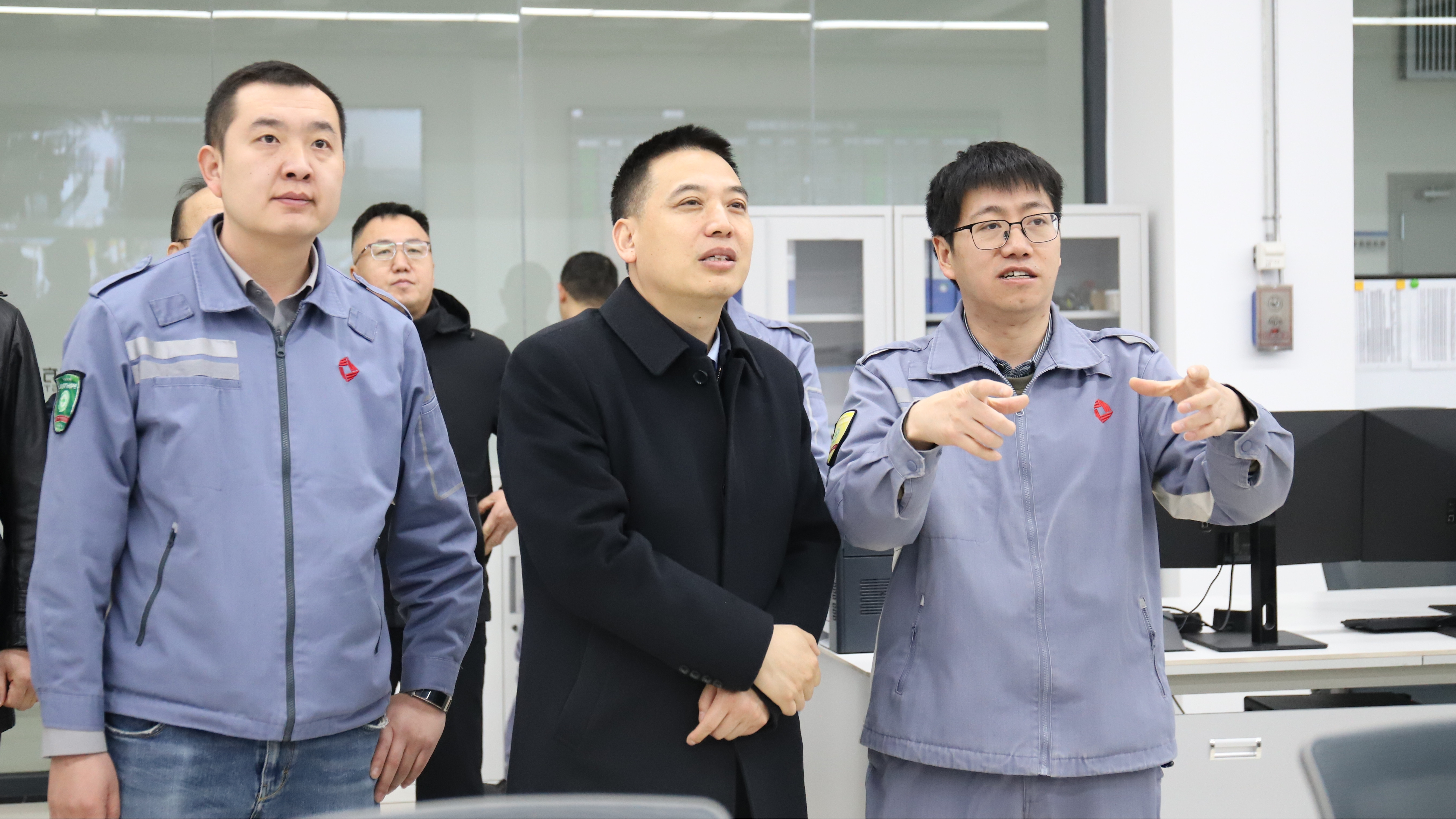 金政伟一行先后参观了公司产成品展示区和集中控制室,详细了解了全链条生产布局、各环节技术瓶颈及产能发挥情况,与公司相关负责人围绕进一步推动光伏新能源产业链健康发展等议题展开了深入交流探讨。他强调,宁夏新能作为区域新能源产业发展的重要骨干企业,要深度推进绿色化、智能化、数字化转型,持续做强、做好产业链,不断壮大产业集群。他鼓励宁夏新能立足自身优势,聚焦主业深耕细作,在产业链延伸、技术创新、绿色发展上持续发力,为石嘴山市产业转型升级和高质量发展注入强劲动能。