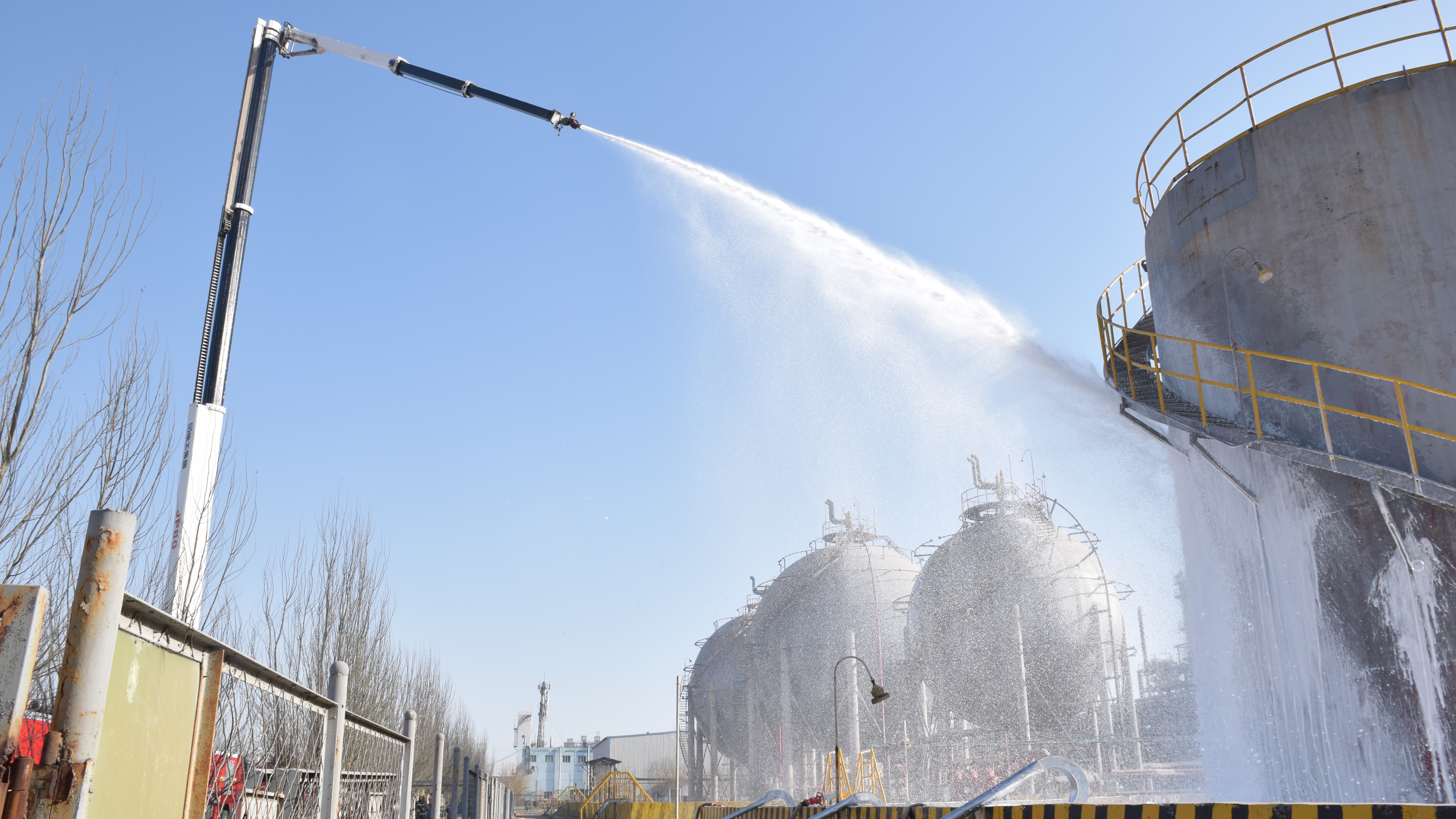 (通讯员 贾爱珍 付慧涛)为全面提升化工灾害事故应急处置实战能力,筑牢企业安全生产防线,3月26日,包头化工联合包头市消防救援支队组织开展庚烷储罐泄漏着火应急处置演练。本次演练共投入消防救援车辆14台、应急指挥车5台以及防爆侦察车1台,一百余名消防战士参与演练。